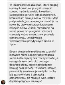 W tym e-booku dziele się z Tobą osobistymi doświadczeniami i zachęcam do mądrej pracy nad sobą – nie po to, by stać się „idealną”, ale by pokochać siebie i zbudować życie pełne spełnienia i szczęścia.